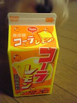 2006-03-28 今週の新商品 emix そうです火曜日は「新商品の日」。 一年くらい前に話題になった「無炭酸 コーラ 乳酸菌飲料」のシリーズで「コーラレモン」。コーラだけど無炭酸ということが話題を呼んで、なぜか売れた。その後「メロンクリームソーダ」もでた。もちろん無炭酸。 私はソーダ味とか苦手なので、ほとんどotoshimoに飲ませる。で、自分は一口だけいただく。